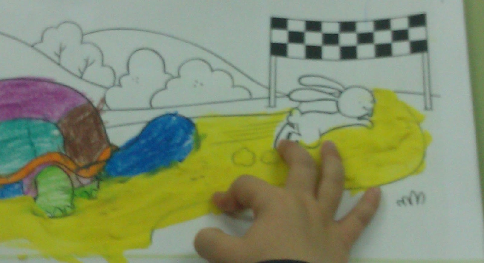 primera parte del cuento, cuando comienza la carrera y la liebre aún no ha
